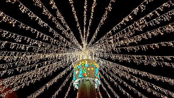 auf den festlichen, lichterdurchfluteten Weihnachtsmarkt.